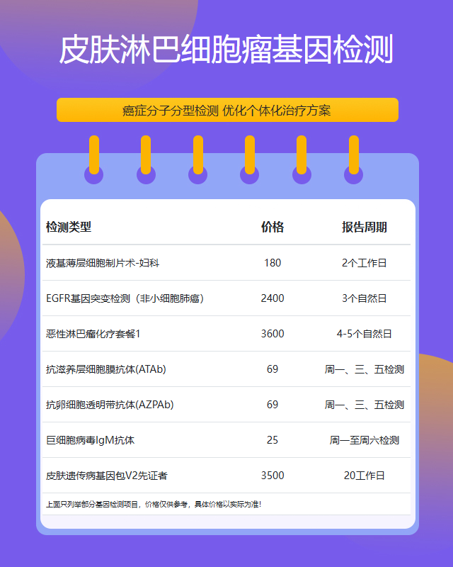 皮肤淋巴细胞瘤基因检测费用因检测项目和技术差异而有所不同,通常在3000-8000元之间。具体费用需咨询检测机构。
