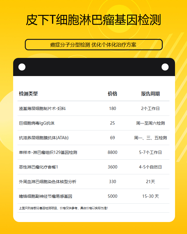 漳州皮下T细胞淋巴瘤基因检测套餐参考推荐
