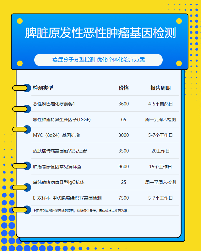 开封脾脏原发性恶性肿瘤基因检测套餐参考推荐