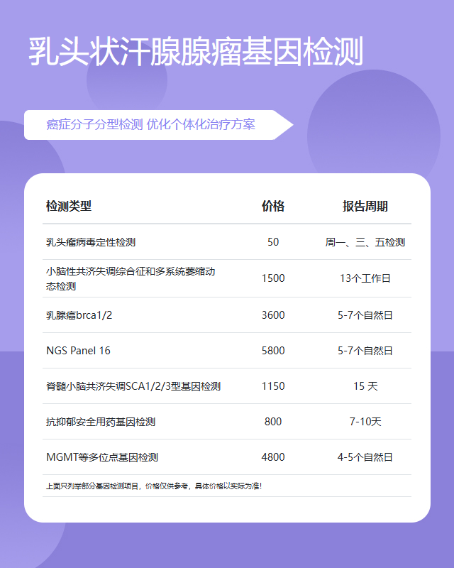南阳乳头状汗腺腺瘤基因检测套餐参考推荐