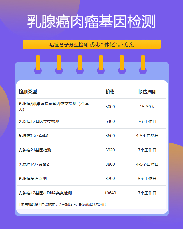 套餐名称:乳腺靶向化疗77基因检测
