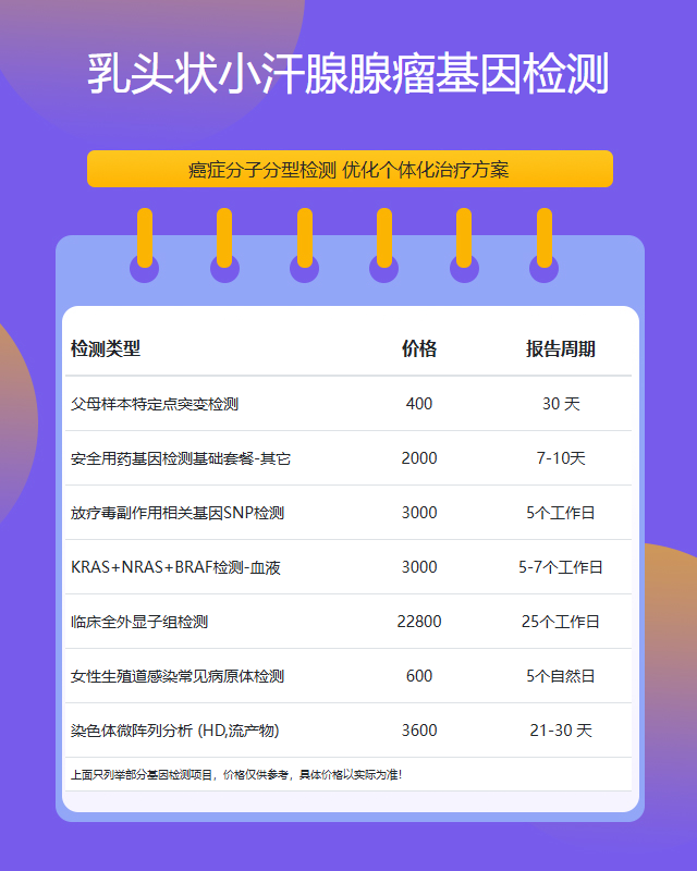 宿州乳头状小汗腺腺瘤基因检测套餐参考推荐