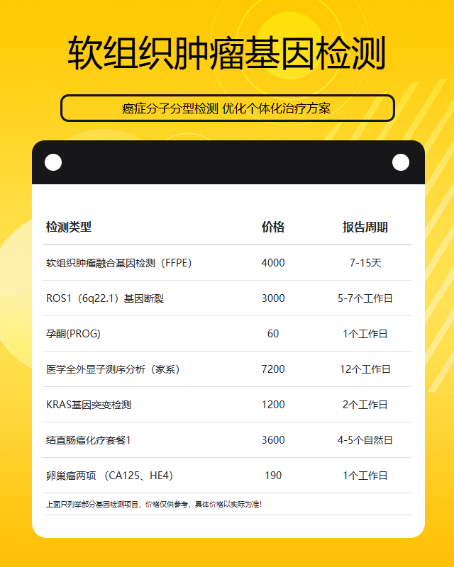 沈阳软组织肿瘤基因检测的费用因多种因素而异,通常价格区间在3000元至10000元不等。具体费用取决于检测项目的复杂性、技术平台的选择以及样本类型等因素。以下从几个方面详细分析影响费用的关键因素。