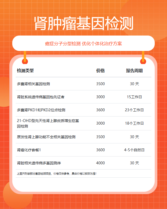 乌鲁木齐肾肿瘤基因检测套餐参考推荐