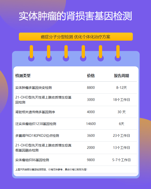 汕头实体肿瘤的肾损害基因检测套餐参考推荐