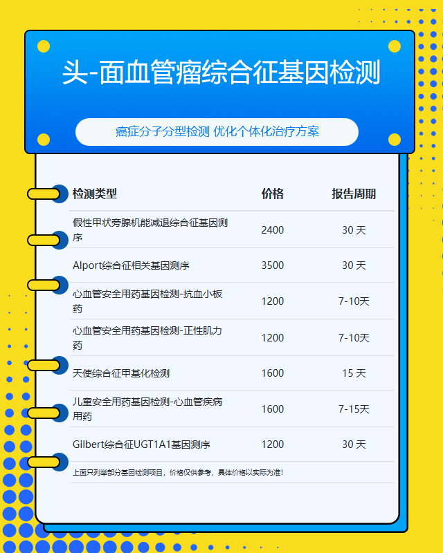 选择桂林头-面血管瘤综合征基因检测机构时,需关注以下核心要素:1) 检测资质是否通过国家临检中心认证;2) 检测范围是否覆盖该疾病全部已知致病基因;3) 技术平台是否采用国际通行的二代测序技术;4) 数据分析团队是否具备罕见病解读经验。