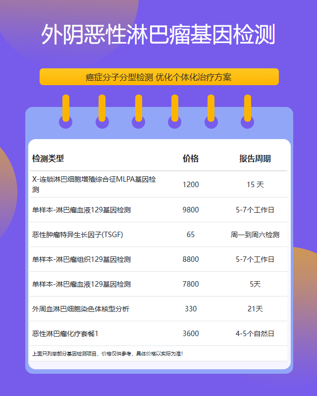 开封外阴恶性淋巴瘤基因检测套餐参考推荐