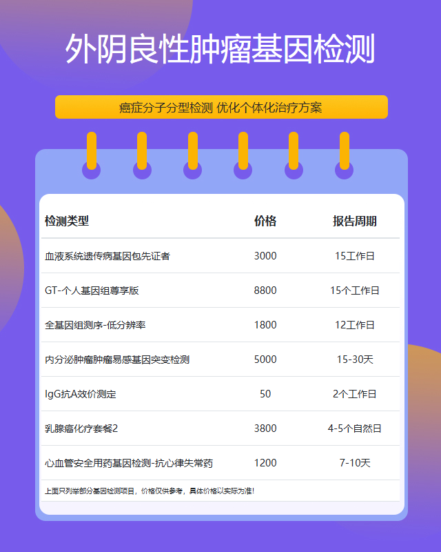 基因检测已成为现代医学诊断的重要辅助手段,尤其对于肿瘤类疾病的早期筛查和精准分型具有重要意义。关于赣州外阴良性肿瘤基因检测的报告周期,需结合检测类型、技术流程及医疗机构实际情况综合分析。