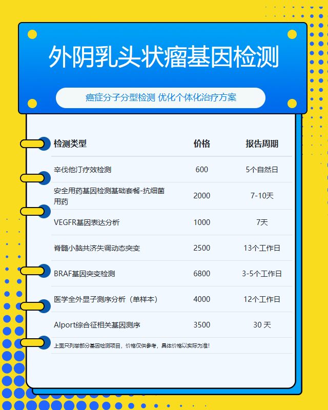 根据公开信息整理,柳州地区外阴乳头状瘤基础基因检测项目价格多在800-1500元之间。若涉及更全面的基因panel检测,费用可能达到2000-3500元。需要注意的是,价格会随技术进步和政策调整产生波动,建议有需求的患者直接咨询当地正规医疗机构获取最新报价。