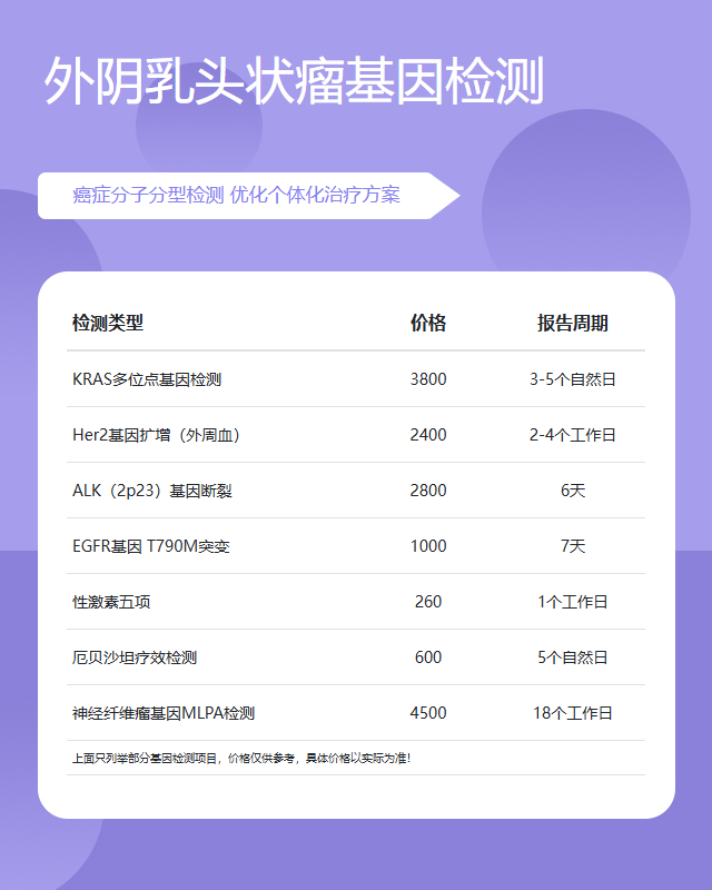 基因检测结果可以帮助明确外阴乳头状瘤的分子特征,为个性化治疗提供依据。某些特定基因变异可能与疾病预后相关,检测结果对长期随访也有参考价值。