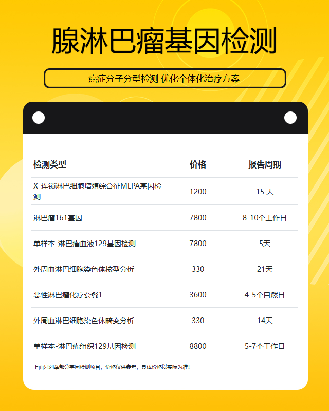 宜昌腺淋巴瘤基因检测套餐参考推荐