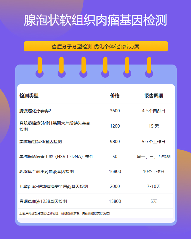 四平腺泡状软组织肉瘤基因检测套餐参考推荐