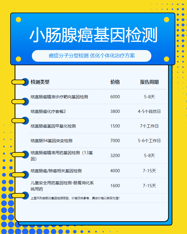 1. 检测范围:检测涵盖的基因数量越多,技术复杂度越高,相应费用也会增加。选择针对小肠腺癌特定基因的检测可能更具性价比。
