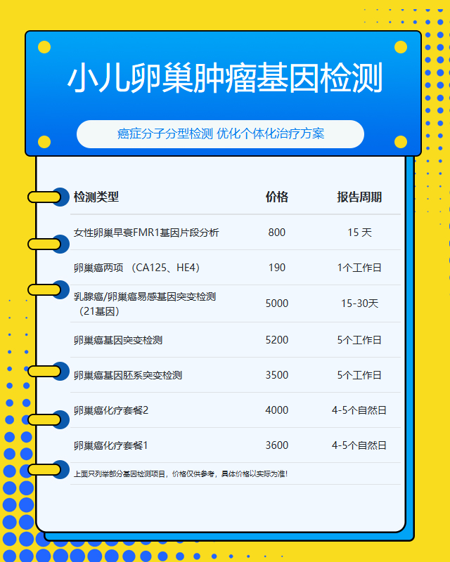 漳州小儿卵巢肿瘤基因检测套餐参考推荐