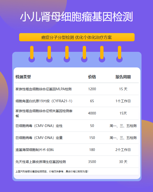 菏泽小儿肾母细胞瘤基因检测套餐参考推荐