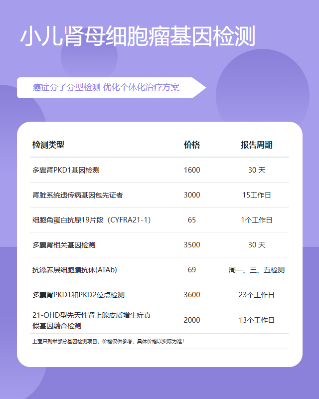 石家庄小儿肾母细胞瘤基因检测套餐参考推荐