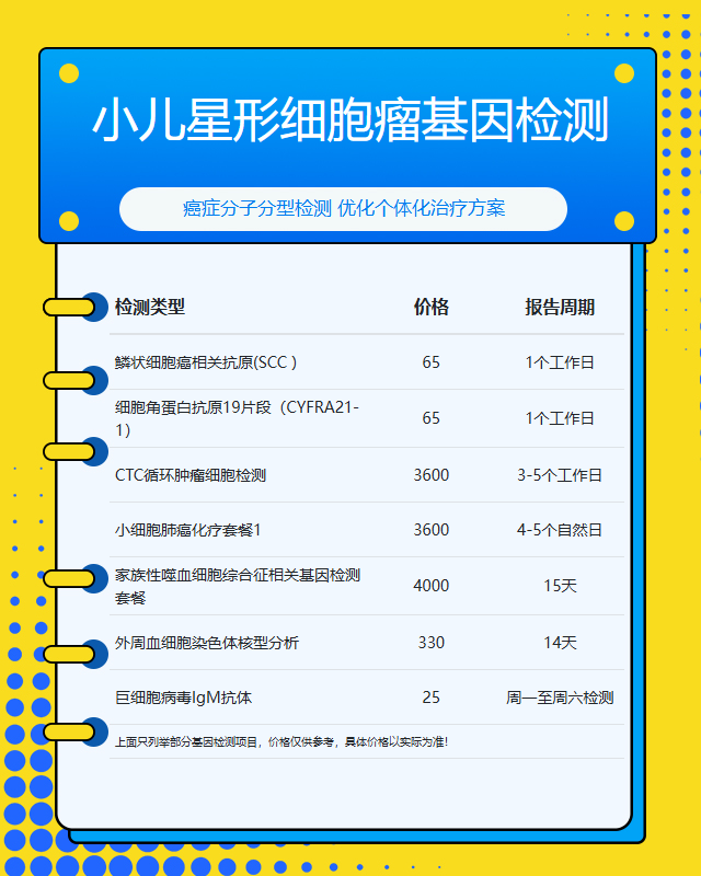 苏州小儿星形细胞瘤基因检测套餐参考推荐