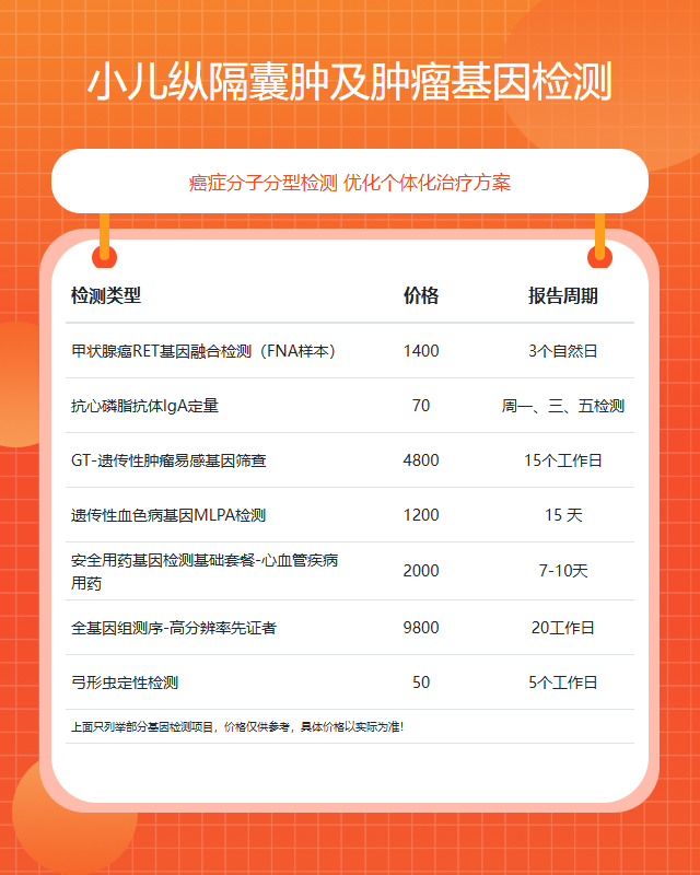 徐州小儿纵隔囊肿及肿瘤基因检测参考