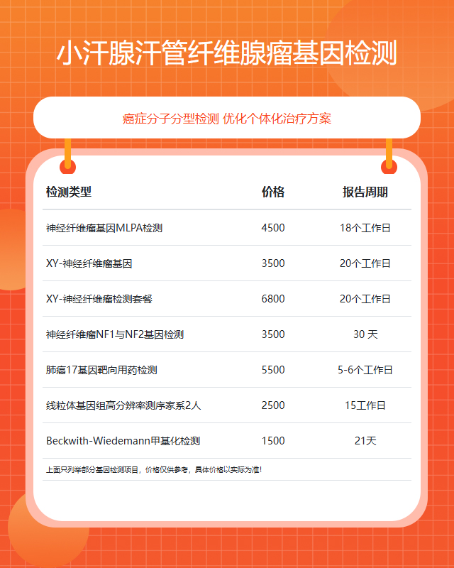 武汉小汗腺汗管纤维腺瘤基因检测套餐参考推荐