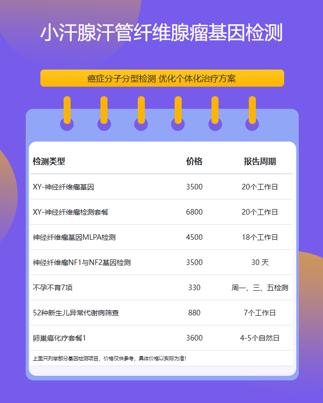 沈阳小汗腺汗管纤维腺瘤基因检测套餐参考推荐