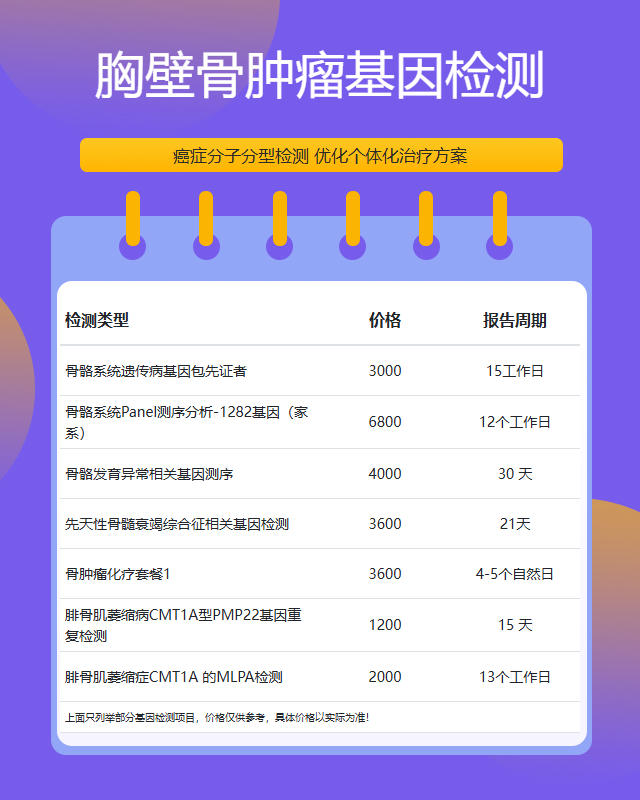 中山胸壁骨肿瘤基因检测套餐参考推荐