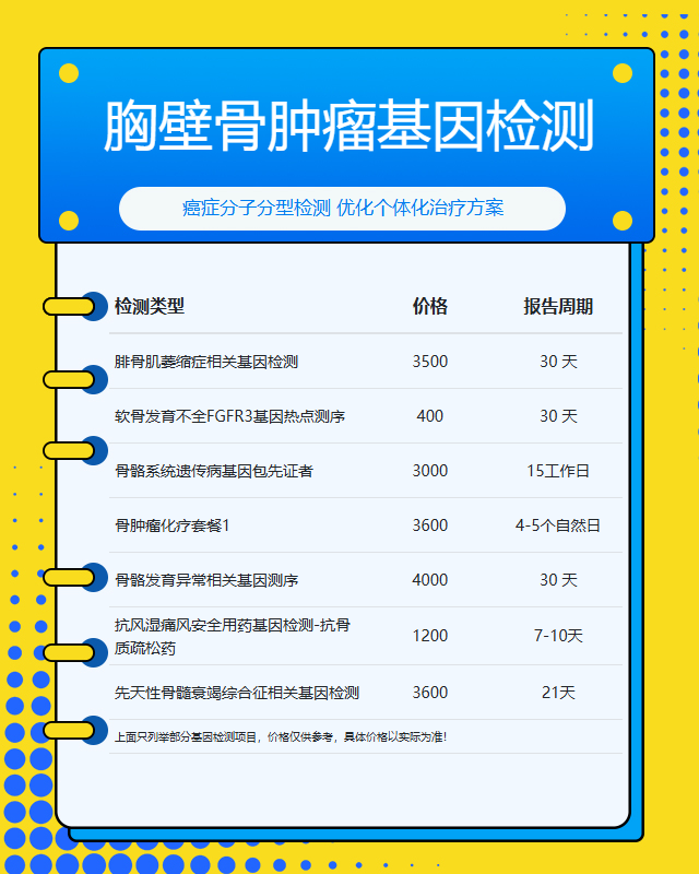 重庆胸壁骨肿瘤基因检测套餐参考推荐