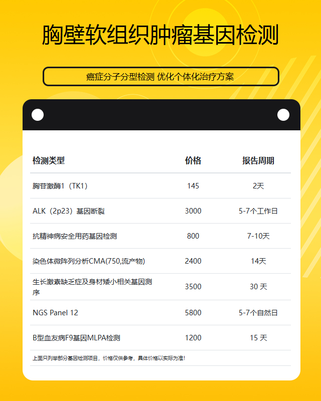 赣州胸壁软组织肿瘤基因检测套餐参考推荐