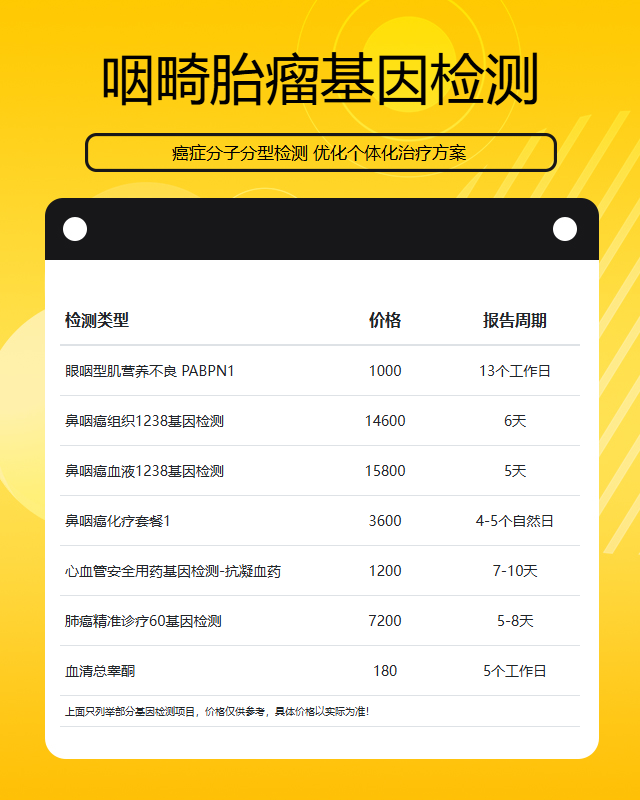 通过规范采集和提交上述材料,可确保温州咽畸胎瘤基因检测结果的可靠性,为临床诊断提供有效依据。具体采样要求建议提前与检测实验室确认。