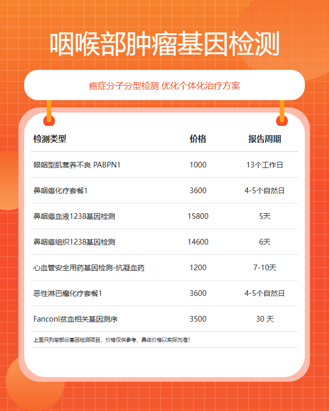 盐城咽喉部肿瘤基因检测套餐参考推荐