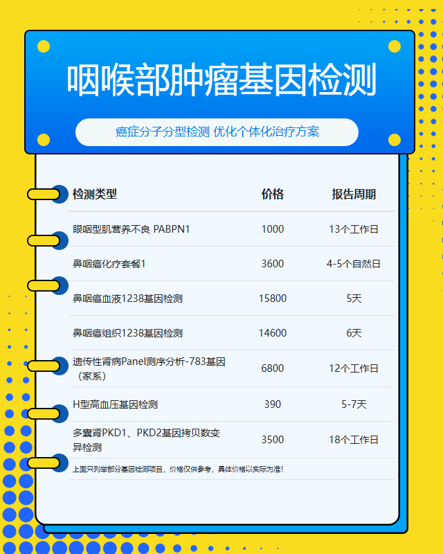 周口咽喉部肿瘤基因检测套餐参考推荐
