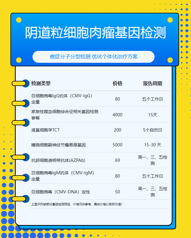 阴道粒细胞肉瘤基因检测并非单一项目,通常包含多个检测内容。基础套餐可能包括常见突变位点筛查,价格约在3000-5000元;而全外显子组测序等全面检测可能需8000-15000元。检测范围越广,技术要求越高,相应费用也会增加。