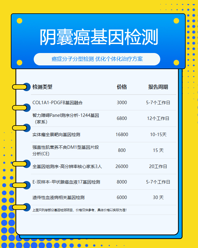 不过,需要注意的是,阴囊癌基因检测并非常规项目,可能仅限特定机构或研究型医院开展。建议有需求的患者提前咨询医院的相关科室,确认是否能够提供该项检测服务。