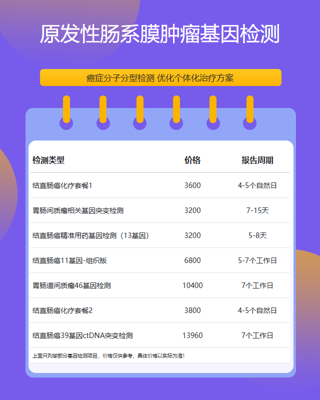 重庆原发性肠系膜肿瘤基因检测套餐参考推荐