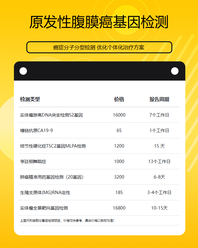 广州正规原发性腹膜癌基因检测机构名单总览,下面针对“广州原发性腹膜癌基因检测最快多久出报告书”和“广州正规原发性腹膜癌基因检测机构名单总览”相关信息为大家做个详细的介绍,通过此文的介绍,大家可以更好的深入了解广州原发性腹膜癌基因检测最快多久出报告书这个问题。