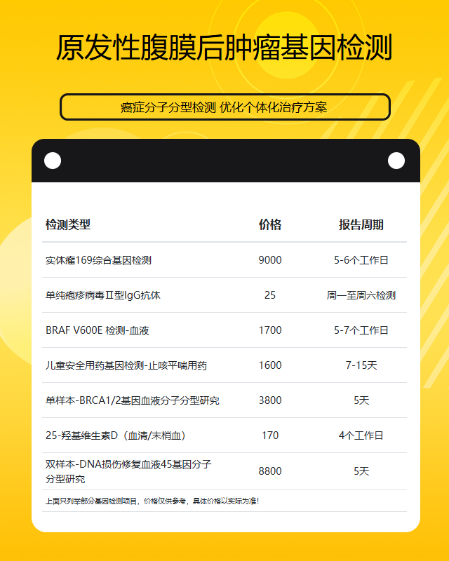 滁州地区的原发性腹膜后肿瘤基因检测需要综合考虑医院的技术水平、专业团队和服务质量。患者应根据自身需求,选择具备先进技术和专业解读能力的医院,以确保检测结果的准确性和治疗的有效性。同时,建议患者在检测前与医生充分沟通,明确检测的目的和预期效果。