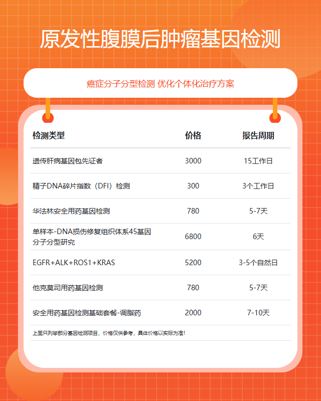 北京合法原发性腹膜后肿瘤基因检测正规中心大全,下面针对“北京原发性腹膜后肿瘤基因检测在哪个科室做”和“北京合法原发性腹膜后肿瘤基因检测正规中心大全”相关信息为大家做个详细的介绍,通过此文的介绍,大家可以更好的深入了解北京原发性腹膜后肿瘤基因检测在哪个科室做这个问题。