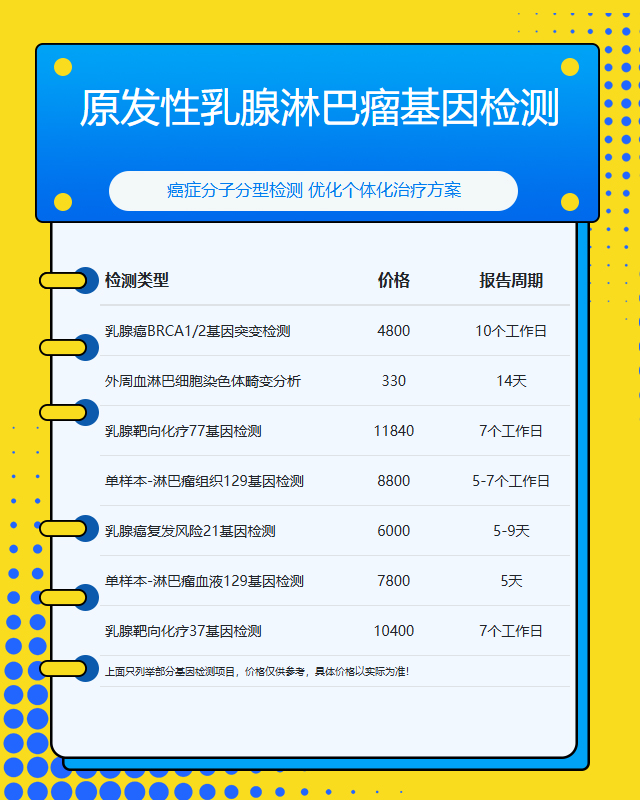 九江原发性乳腺淋巴瘤基因检测套餐参考推荐