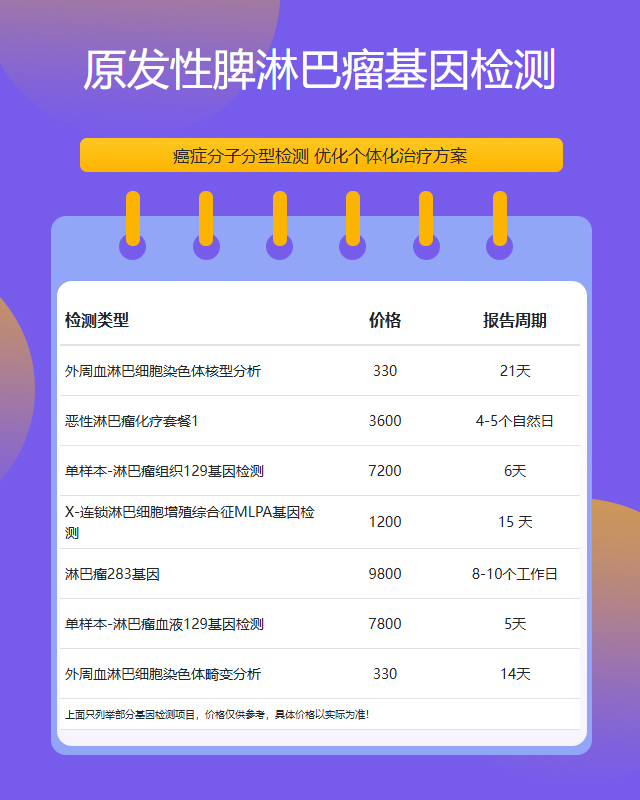 周口原发性脾淋巴瘤基因检测套餐参考推荐
