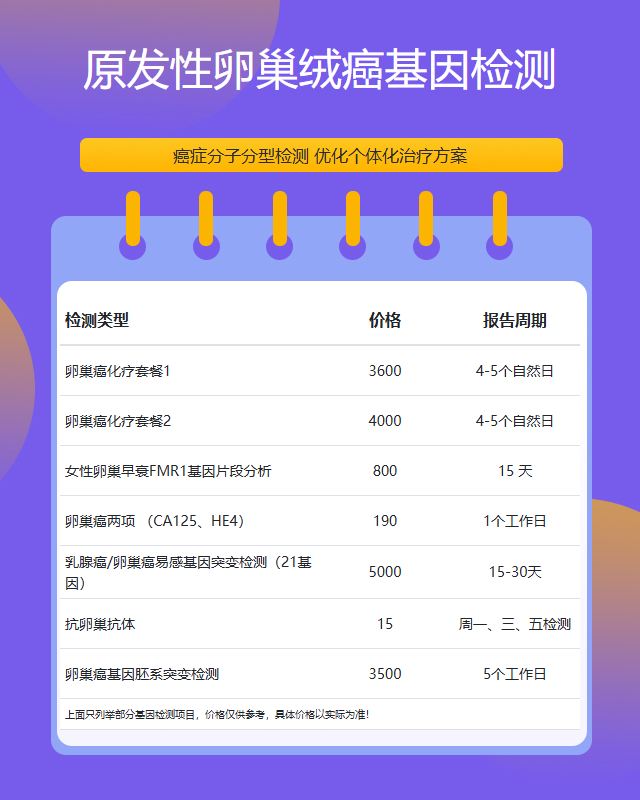 保定原发性卵巢绒癌基因检测套餐参考推荐