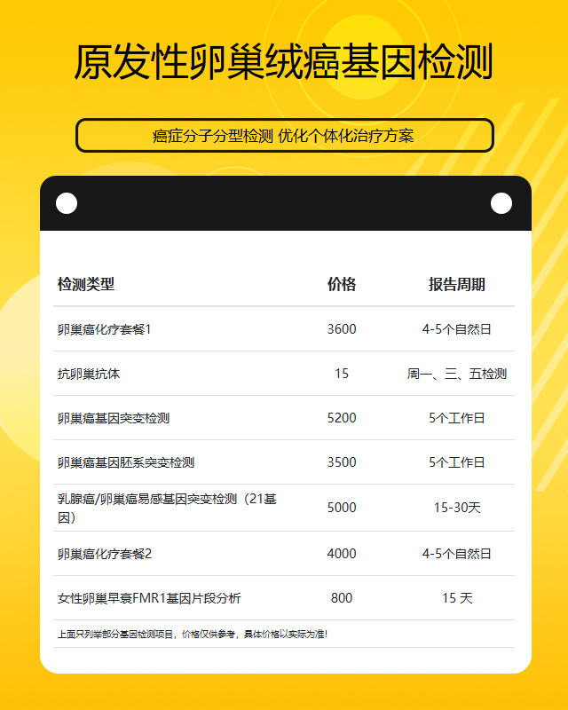 唐山原发性卵巢绒癌基因检测套餐参考推荐