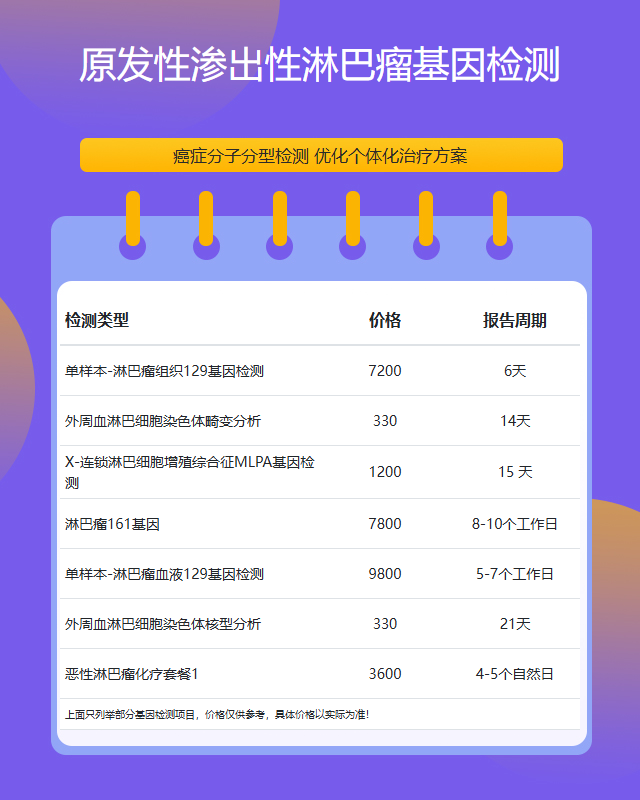 宁波原发性渗出性淋巴瘤基因检测套餐参考推荐