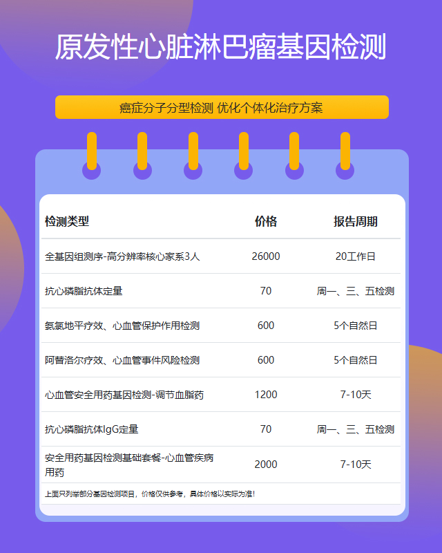 苏州原发性心脏淋巴瘤基因检测套餐参考推荐