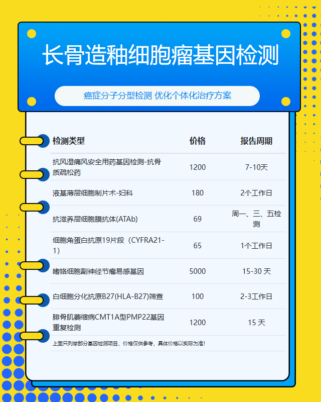 三亚长骨造釉细胞瘤基因检测的费用通常在几千元到上万元不等,具体费用取决于以下因素: