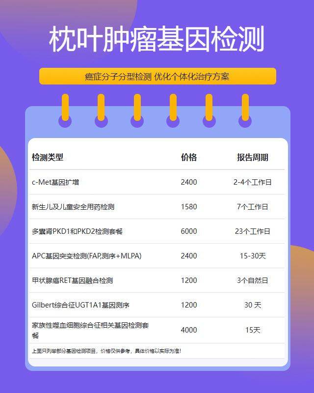 咨询范围:妇幼专项基因检测、癌症基因检测、全外显子基因检测、遗传疾病基因检测、肿瘤基因检测、染色体异常基因检测、单基因检测、易感基因检测、安全用药基因检测等,提供#枕叶肿瘤# #交界瘤# #纤维瘤# #胸腺瘤# #膀胱鳞状细胞癌# #膀胱嗜铬细胞瘤# #大肠淋巴瘤# #腹膜间皮瘤# #脑膜肉瘤# #皮肤淋巴细胞瘤# #胃泌素瘤# #小儿嗜铬细胞瘤# #小儿椎管内肿瘤# #小儿纵隔囊肿及肿瘤# #血管内皮瘤# #痣样基底细胞癌#等肿瘤基因检测综合业务咨询服务。
