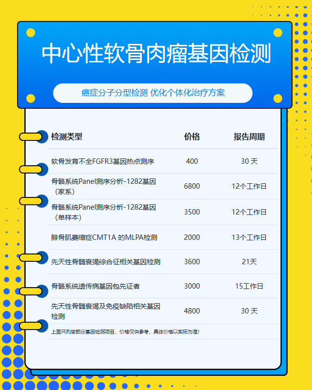 福州中心性软骨肉瘤基因检测套餐参考推荐