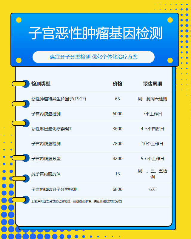 一般来说,子宫恶性肿瘤基因检测需要提供肿瘤组织样本或血液样本。检测周期通常在7-15个工作日,费用因检测项目不同而从数千到上万元不等。建议患者在接受检测前与主治医生充分沟通,选择适合的检测方案。