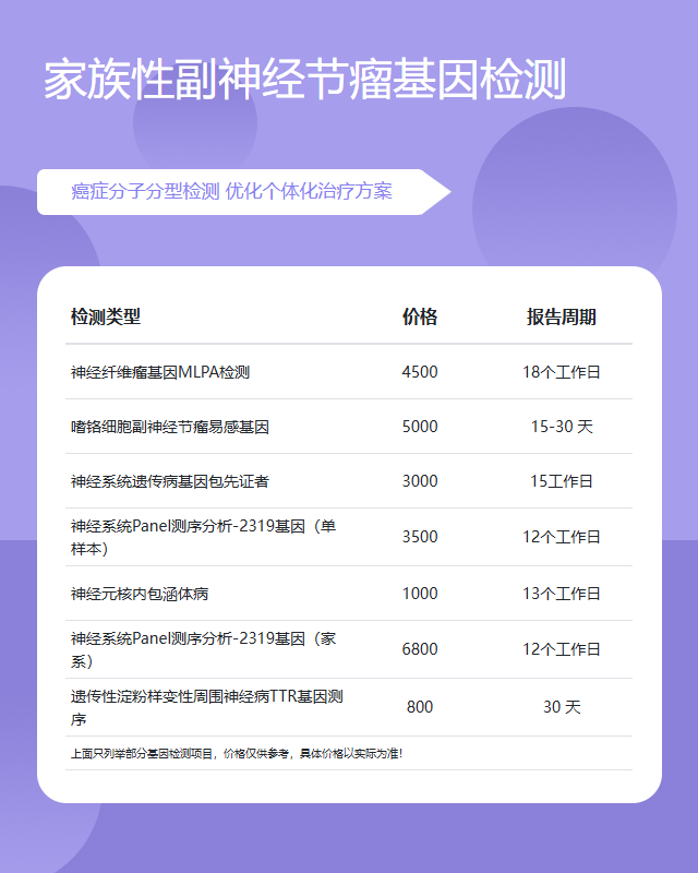 长沙家族性副神经节瘤基因检测套餐参考推荐