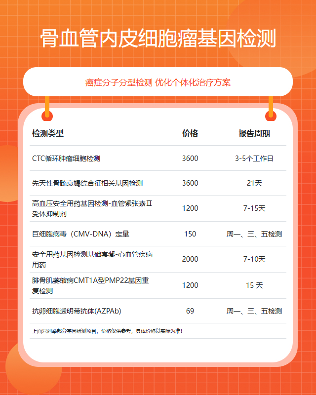 兰州骨血管内皮细胞瘤基因检测套餐参考推荐