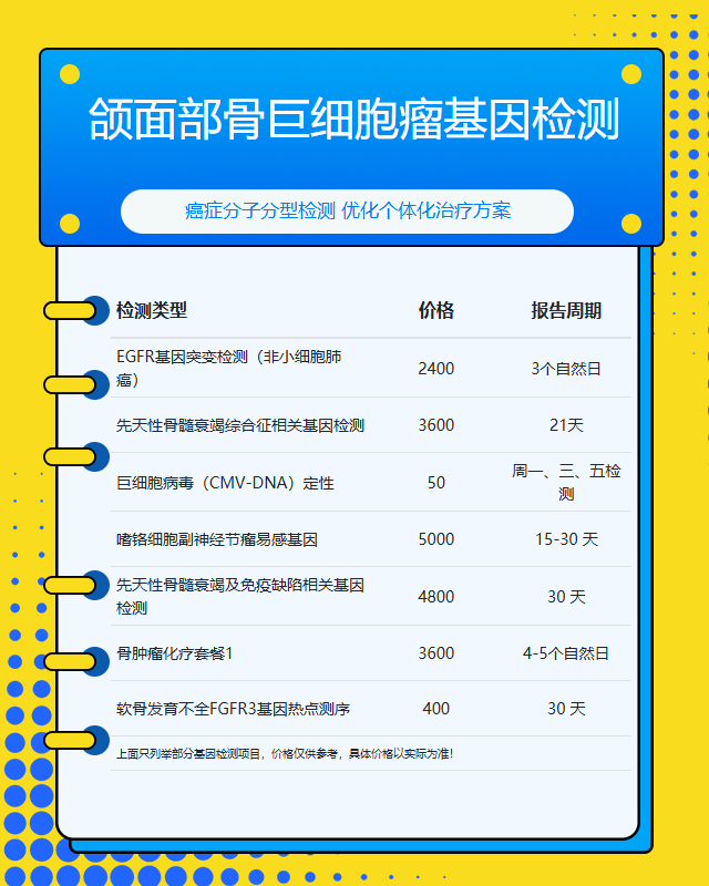 泰安颌面部骨巨细胞瘤基因检测套餐参考推荐