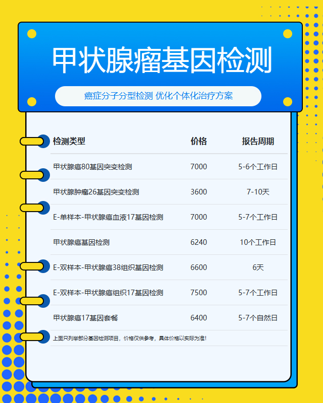 2. 检测项目科学性:检测应覆盖甲状腺瘤相关的主要基因,检测方法应符合行业标准。